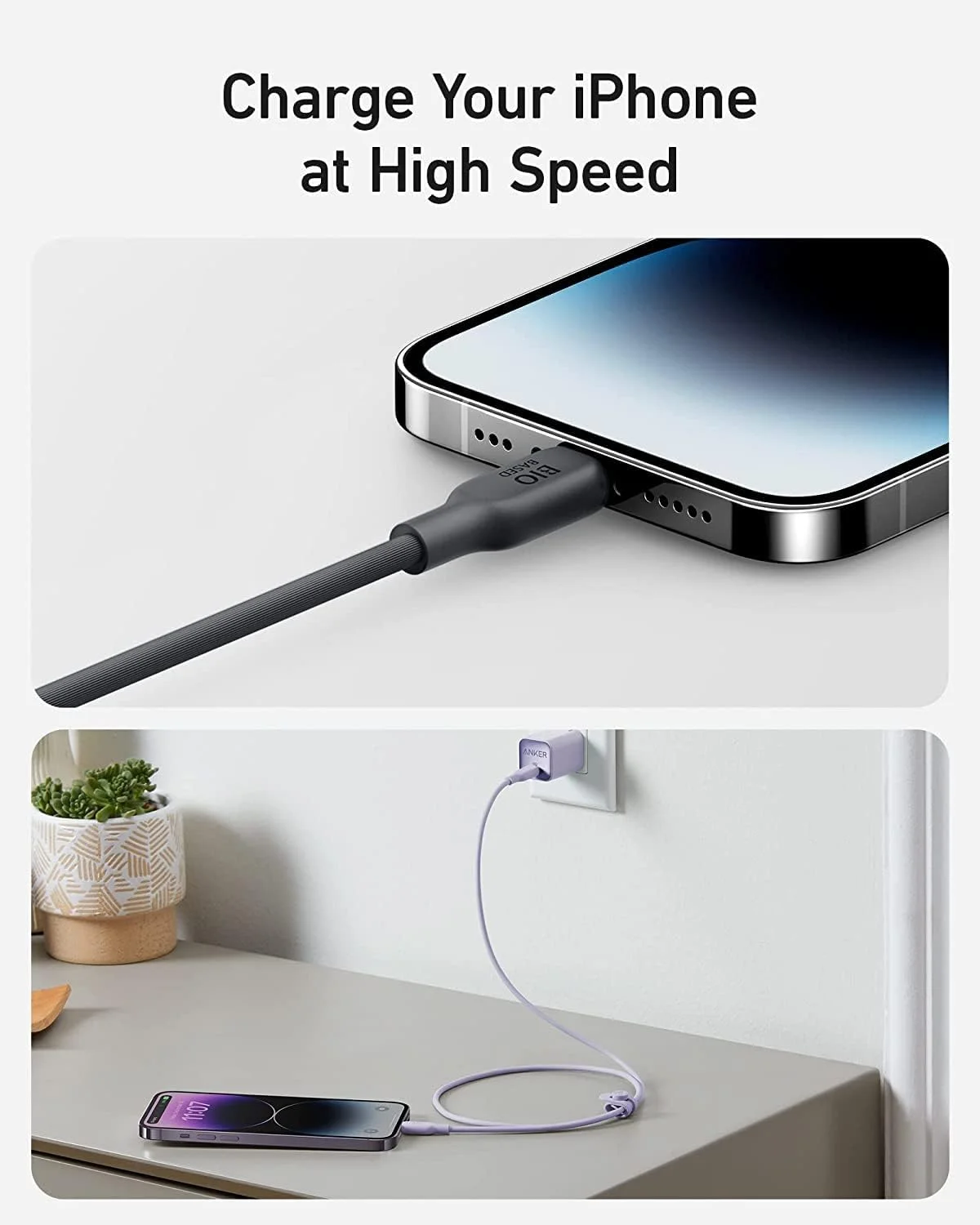 Anker 541 USB-C a Lightning Cable | Certificado MFi | Bio-Nylon | Carga Rápida PD | 1.8 metros | Negro