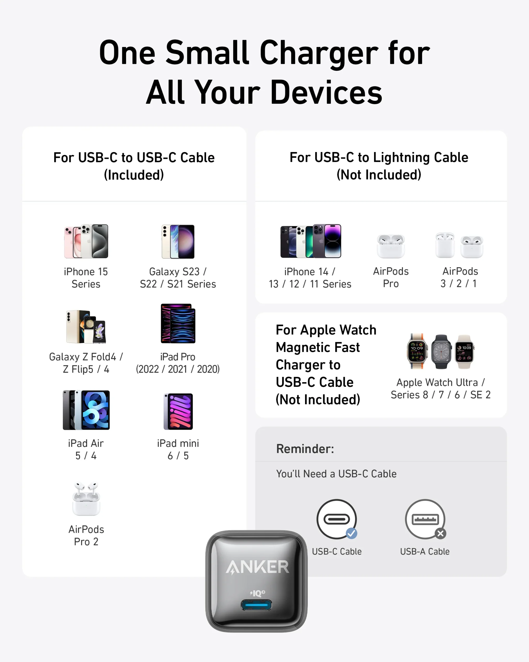 Protección Avanzada MultiProtect El diseño súper compacto no sacrifica la seguridad. Este pequeño gigante cuenta con el sistema de seguridad de 11 puntos MultiProtect de Anker, que incluye control de temperatura activo, protección contra cortocircuitos y regulación de voltaje. Tu inversión y la batería de tus equipos estarán protegidas en todo momento mientras se cargan a la máxima velocidad.
