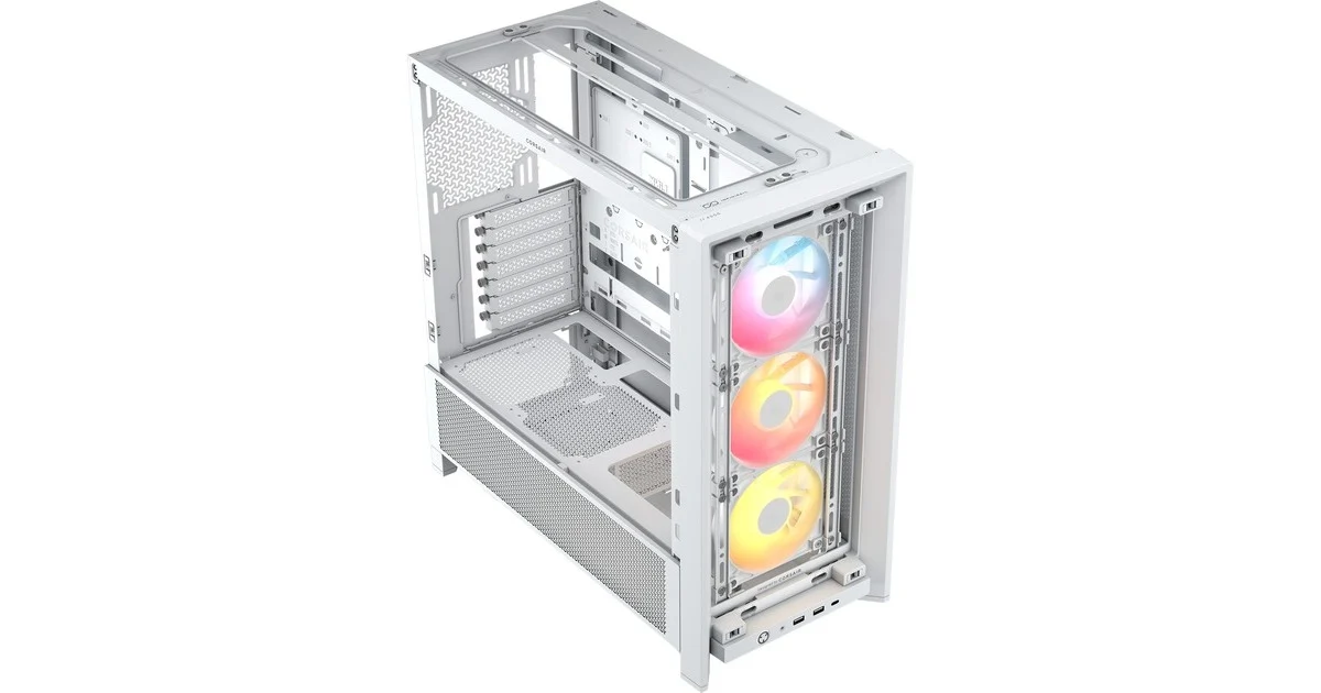 CORSAIR 4000D RS ARGB Mid-Tower | Gabinete ATX de Alto Flujo de Aire | Blanco | Incluye 3 ventiladores (3 abanicos RS120 ARGB) | Panel Frontal de Acero Perforado | Cristal Templado