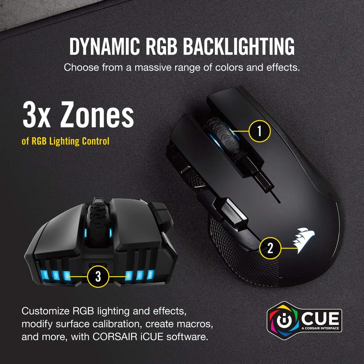 CORSAIR IRONCLAW RGB WIRELESS | Mouse Gamer Inalámbrico | Diseño Ergonómico para Manos Grandes | Sensor Óptico de 18,000 DPI | 10 Botones Programables | Tecnología SLIPSTREAM | Negro
