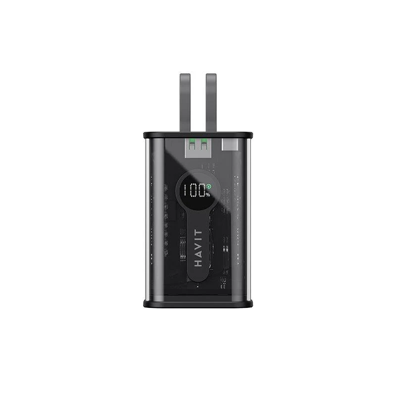 Havit PB94 | Power Bank 10,000mAh | Diseño Transparente Cyberpunk | Carga Rápida 22.5W y PD 20W | Pantalla Digital LED | Salida Dual USB-C y USB-A | Portátil Ultra Compacto | Protección de Seguridad Multipunto | Negro