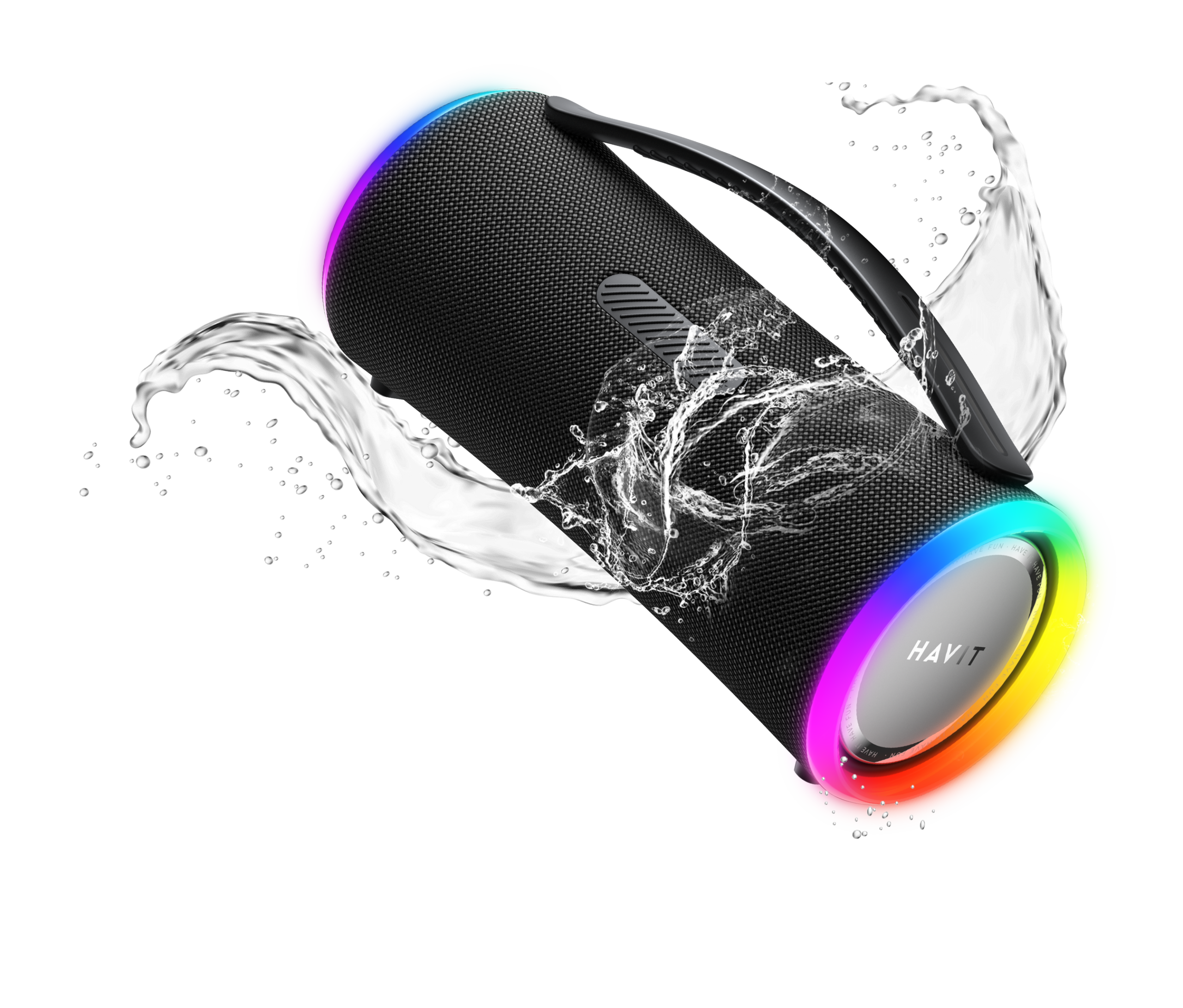 Havit SK838BT | Parlante Boombox Portátil | 20W de Potencia | Resistencia al Agua IPX6 | Bluetooth 5.3 | Iluminación RGB Dinámica | Negro | Resistente al Agua |