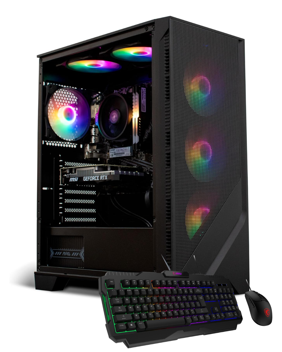 PC Gaming NSX | AMD Ryzen 5 5500 | NVIDIA GeForce RTX 3050 | 16GB RAM (2x8GB) | SSD 480GB | 4 Abanicos RGB | Incluye Combo MSI FORGE GK100 (Teclado y Mouse RGB)