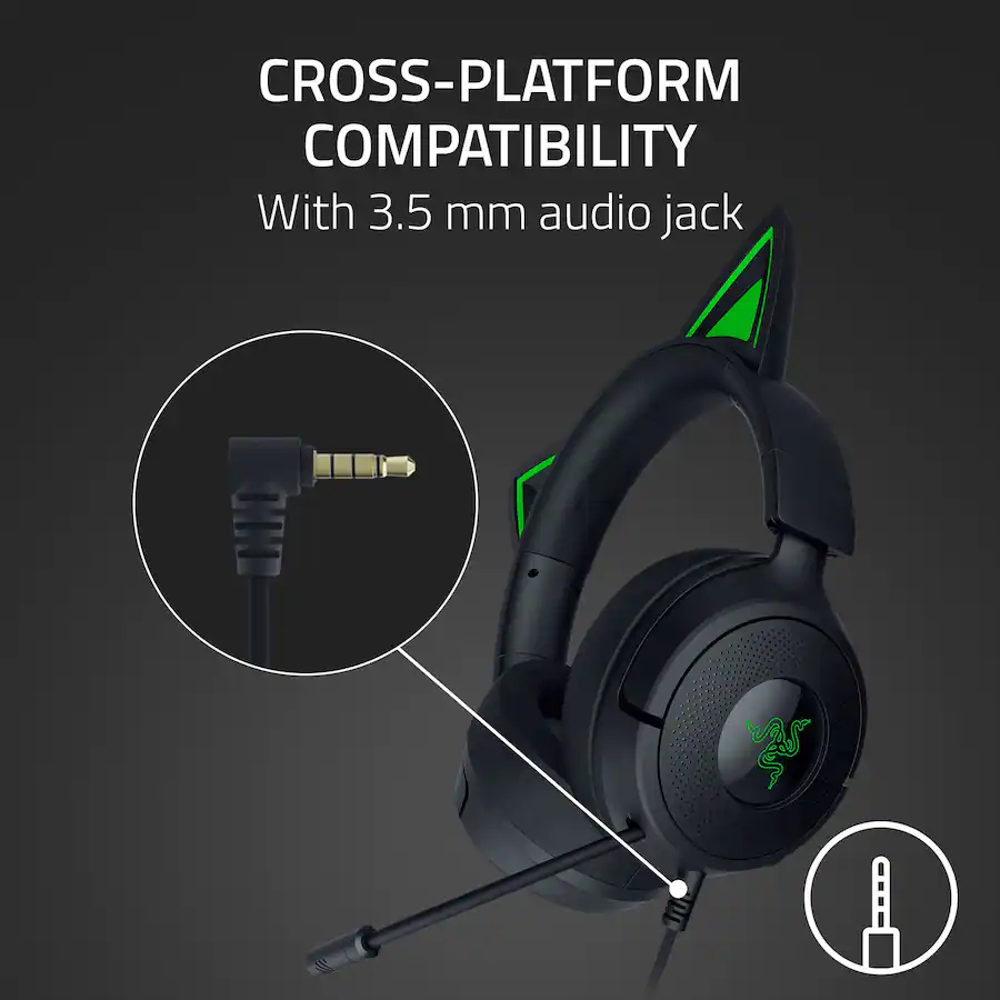 Razer Kraken Kitty V3 X | Headset Gamer con Orejas de Gatito | Iluminación Razer Chroma™ RGB | Micrófono Cardioide HyperClear | Sonido Surround 7.1 | Ultra Ligero | Negro