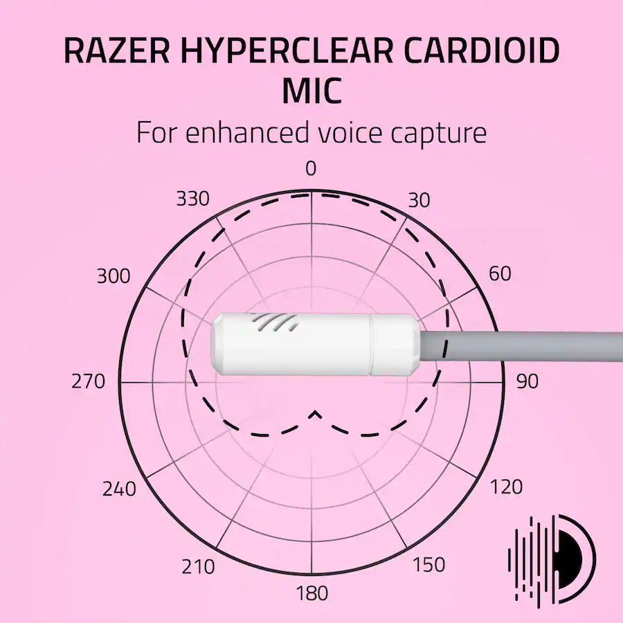 • Micrófono: Cardioide Razer™ HyperClear (Fijo).