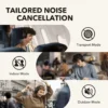 Cancelación de Ruido Adaptada a tu Entorno Mantén la concentración en cualquier lugar con los tres modos de cancelación de ruido del Life Q30. El modo Transporte minimiza el rugido de los motores de aviones, el modo Exteriores reduce el ruido del tráfico y el viento, mientras que el modo Interiores amortigua los sonidos de oficina y voces de fondo. Sus micrófonos duales detectan y filtran hasta el 95% de los ruidos de baja frecuencia para que nada te distraiga de tu música.