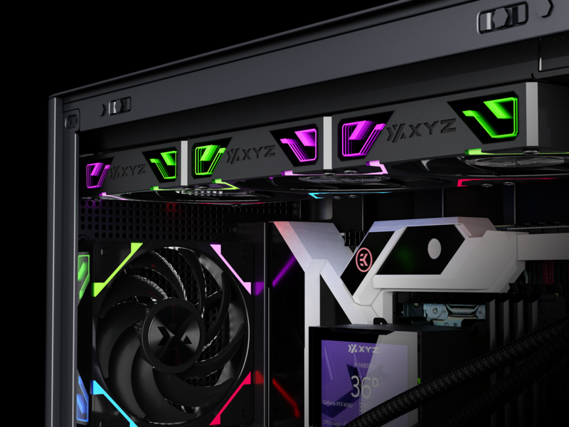 • 3 Ventiladores Vortex PRO ARGB (120mm): Ventiladores con control PWM y rodamientos FDB (Fluid Dynamic Bearing) que garantizan una vida útil de 60,000 horas.