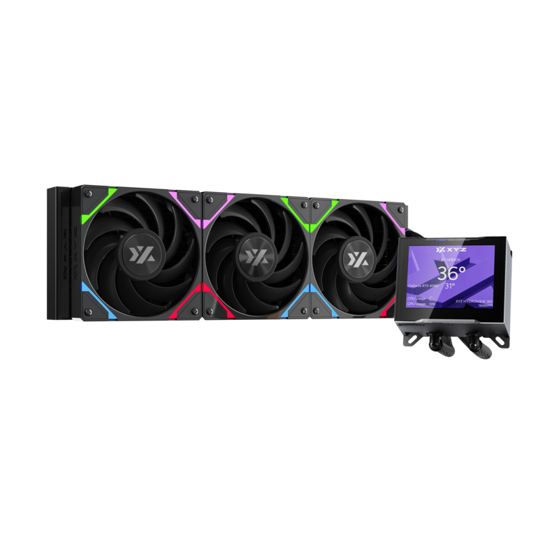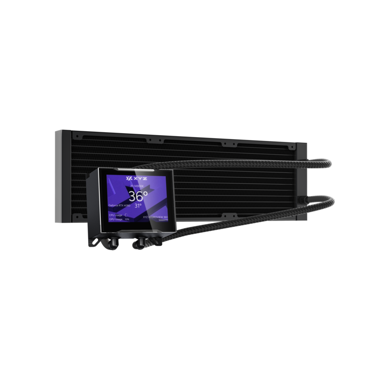 Enfriamiento Líquido XYZ HYDROVIEW AIO 360 Black | Pantalla LCD 3.5″ | 3 Ventiladores Vortex PRO ARGB | TDP 340W | Intel & AMD