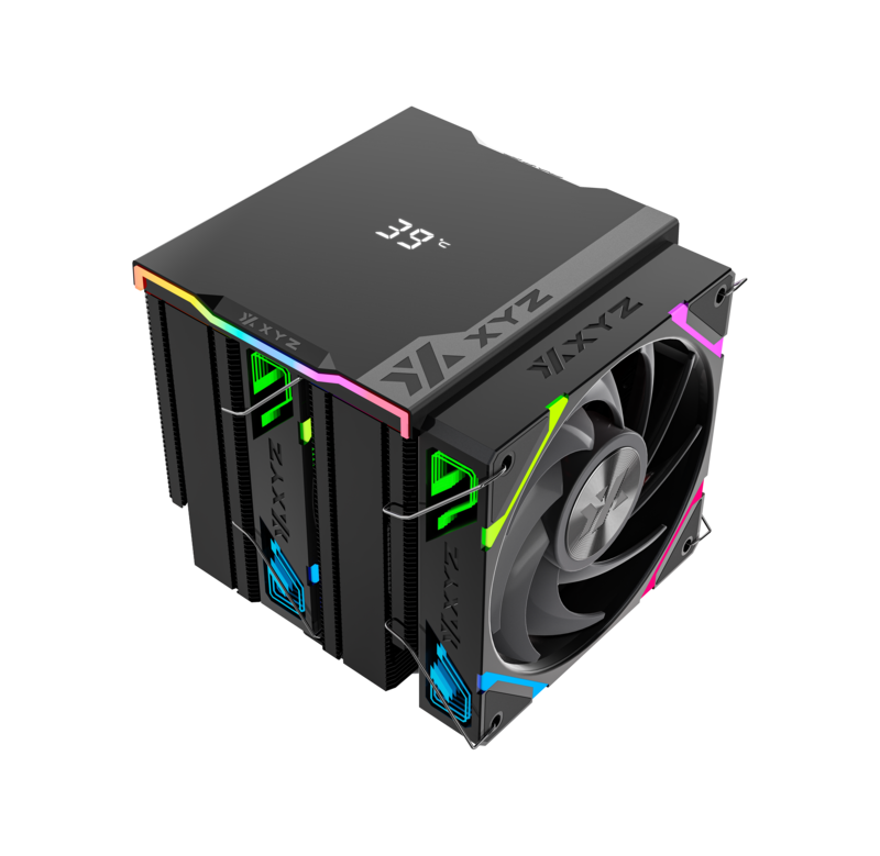 Disipador de Aire | CPU Cooler XYZ THERMAX 6 PRO DUO | Doble Torre y 6 Heat Pipes | Pantalla de Temperatura | 2 Ventiladores VORTEX ARGB | TDP 230W