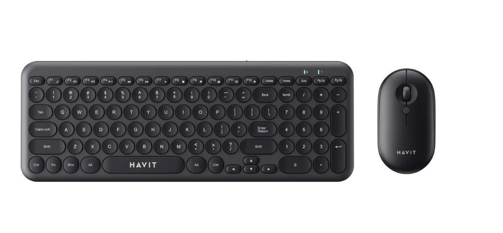 Havit KB254GCM | Combo Inalámbrico 2 en 1 | Teclado Compacto de 99 Teclas con Teclado Numérico | Mouse Óptico Ajustable 1600 DPI | Conexión 2.4GHz Estable | Teclas Silenciosas Estilo “Chocolate” | Diseño Ergonómico para Oficina y Hogar